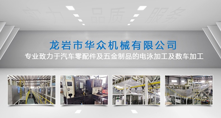 About us龍巖市華眾機械有限公司成立于2010年12月,新廠位于福建省龍巖市新羅區東寶工業(yè)集中區,注冊資本3000萬元,占地27000平方米,員工60多人,是一家專業(yè)從事電泳、磷化、數車等加工業(yè)務的制造型企業(yè),是國家高新技術企業(yè),擁有三十多項實用新型專利。 我司的電泳技術和品質在華南地區深受客戶信賴。公司擁有20年以上經驗豐富的技術人員和管理人員,擁有全自動電泳生產設備,所采用原料均為美國、德國進口,產品品質能達到國際電泳涂裝標準要求,廣泛應用于汽車零部件、機械配件、電子產品、工藝品等一系列金屬制品。現配套服務于比亞迪、吉利、通用、福特、大眾、豐田、現代等全球知名汽車公司。 2018年8月公司通過NSF-ISR管理評審,獲得IATF16949質量管理體系證書。